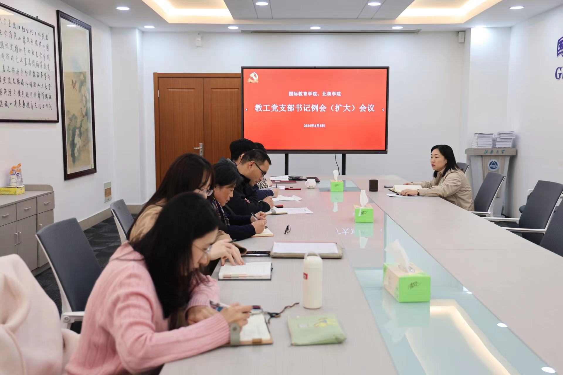为进一步加强基层党支部建设,提升基层党建工作质量,4月8日下午,国际教育学院、北美学院教工党支部书记例会(扩大)会议在学院A306召开。党支部书记、党支部委员代表、专职组织员等参加会议。