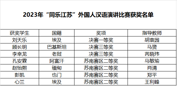 “同乐江苏”外国人汉语演讲比赛是省内最具影响力的外籍人士文化赛事之一,是外籍人士学习中文、理解中国和江苏地方文化的重要平台。以赛促学,激发了我校国际学生的中文学习热情,更充分展现了我校国际学生教育教学和人才培养的成效。