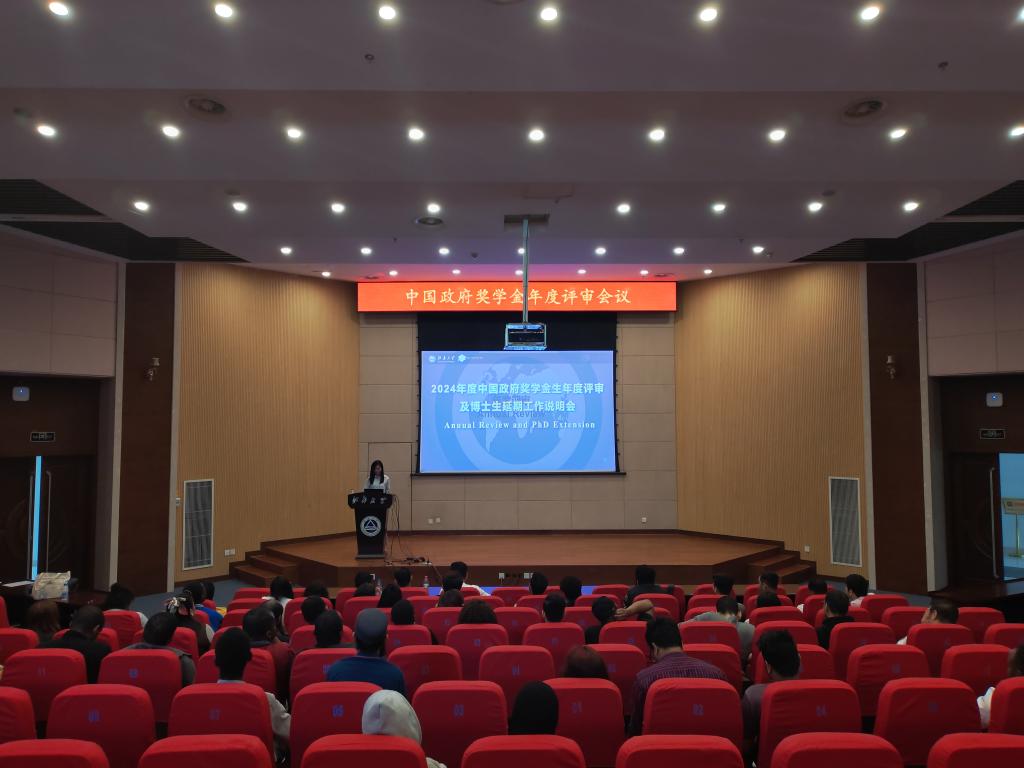 4月24日上午,2024年中国政府奖学金年度评审大会在远东报告厅召开,全体中国政府奖学金学生参加会议。