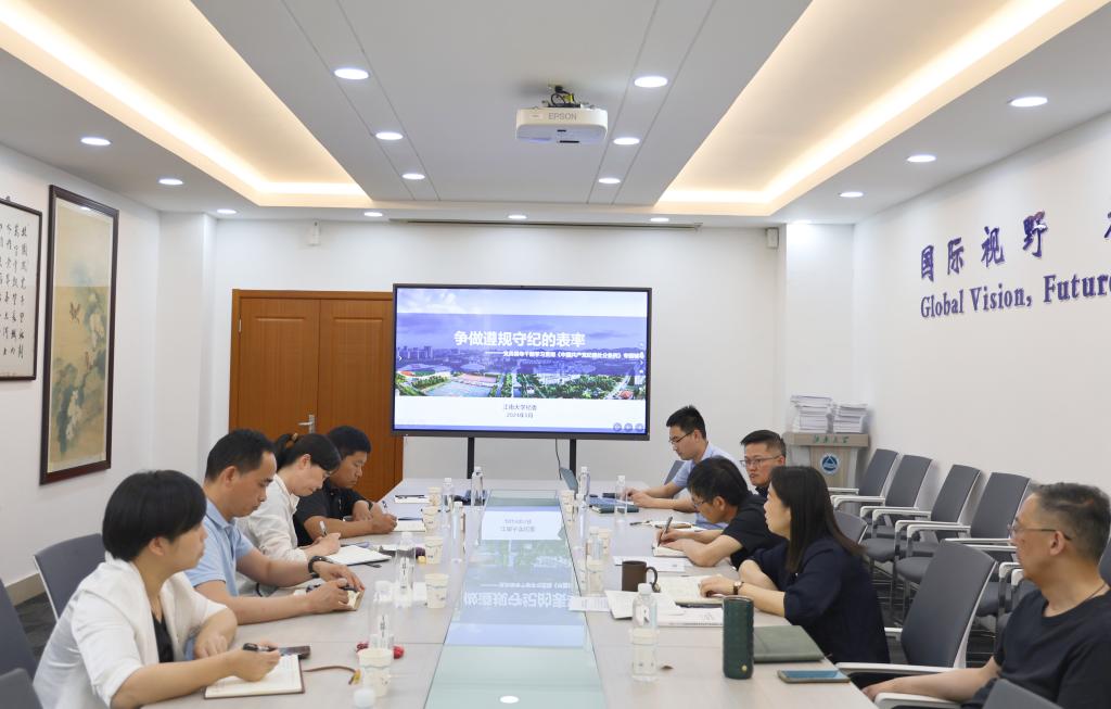 5月21日下午,国际教育学院 北美学院、体育部党总支理论学习中心组在文科楼306举行党纪学习教育专题辅导。校纪委监督检查室主任董霆列席参加并开展联学宣讲。学习会由国际教育学院、北美学院党总支书记王晖主持。