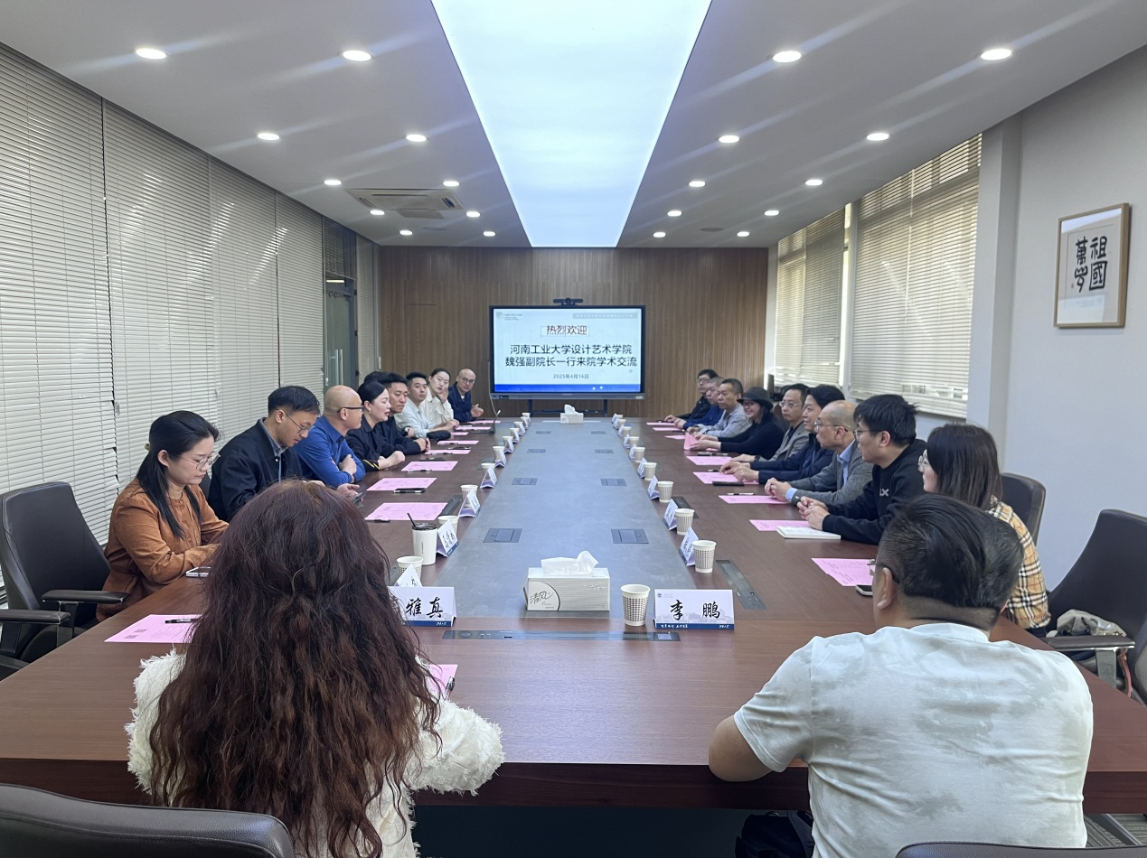 4月16日上午,华中师范大学美术学院院长郑达、辛艺华教授一行与河南工业大学设计艺术学院副院长魏强一行来访设计学院。设计学院院长魏洁、副院长廖曦、副院长周林等共同接待,三方就学科建设、专业课程体系等核心议题展开深入交流与探讨。