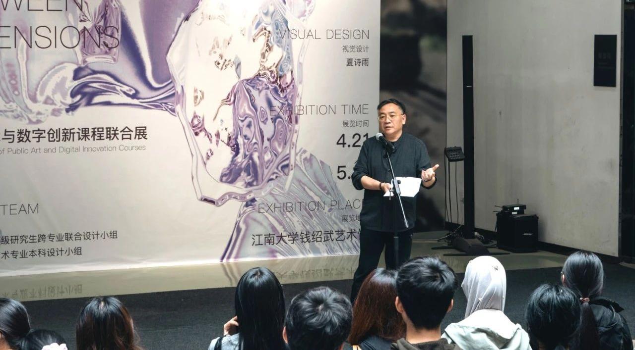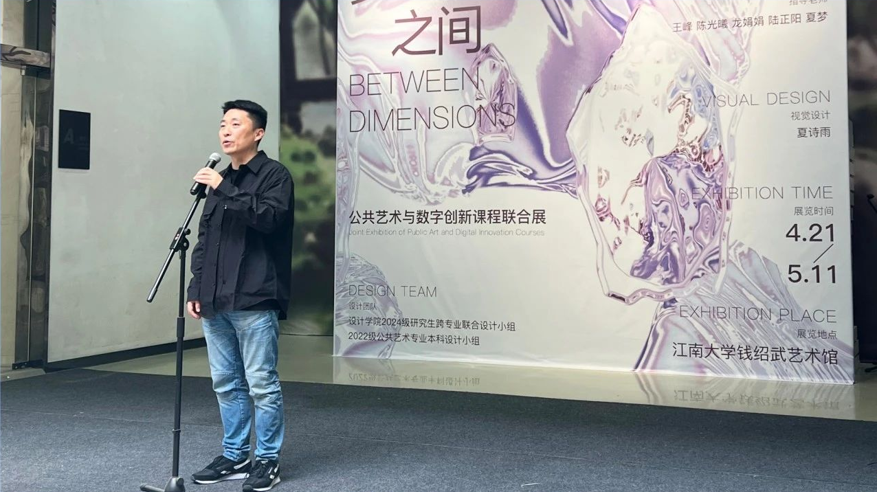 4月21日上午,由设计学院二级教授、博导、国社科艺术学重大项目首席专家王峰领衔授课,2024级研究生跨专业联合设计小组、2022级公共艺术本科设计小组参展的“多维之间:《公共艺术与数字创新》专题研究课程汇报展”在江南大学钱绍武艺术馆正式开展,江南大学设计学院党委书记王维青、副院长廖曦、课程授课教师以及全体参展学生共同出席了开幕式。