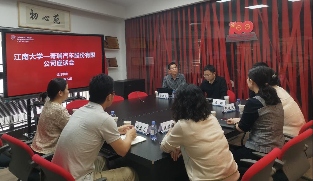 4月22日下午,奇瑞汽车股份有限公司与江南大学设计学院在江南大学设计学院初心苑举行校企合作交流座谈会。奇瑞汽车股份有限公司开阳实验室总工程师、新型智能交互与应用实验室主任刘浩,奇瑞汽车股份有限公司创新合作部高级主任师陆如升,江南大学设计学院党委副书记兼副院长江琳娜、产品设计系主任钱晓波、产品设计系副系主任兼交通工具实验室负责人张立昊、产品设计系教授鲍懿喜、工业设计系副教授李瑞、分团委书记兼学工办主任吴雨琛、分团委副书记曹淑慧等双方代表出席活动。