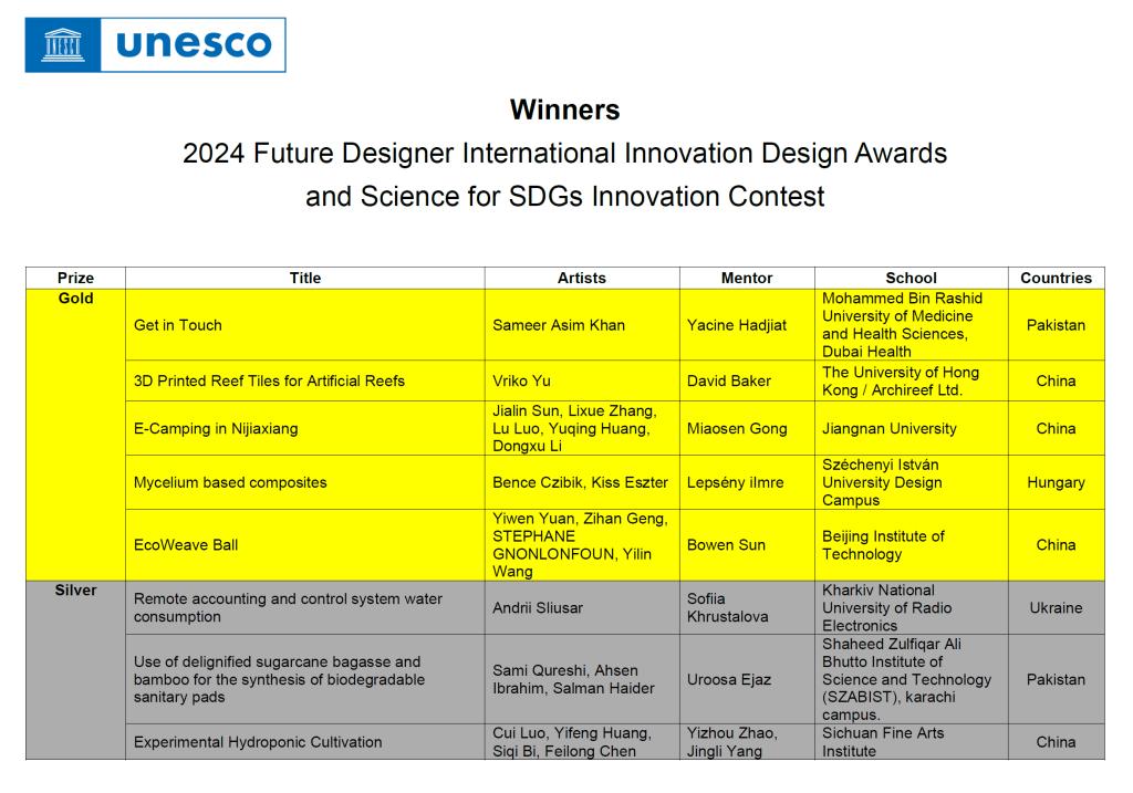 联合国教科文组织(UNESCO)官网公布IIDA获奖名单
