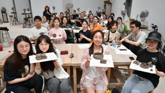 5月15日,首场工作坊「森林呼吸」心灵重塑计划在北区牡丹园与一站式活动中心拉开帷幕。作为系列活动的开篇,本场以“沉浸式自然疗愈体验”为特色,引导参与者通过视觉、听觉、触觉等多维度感知,重启与自然的深层联结。5月20日晚,第二场工作坊「觉于器—拥抱泥土・拥抱自己」在蠡湖校区陶艺工作室温馨启幕。江南大学学生工作处副处长蒋洁、设计学院党委副书记江琳娜莅临现场,与同学们共同体验陶艺疗愈的独特魅力。江南大学美术馆艺术总监贺文忠老师担任主讲,以“泥土为媒,匠心疗心”为核心理念,带领参与者在指尖与陶土的对话中探索内心世界。5月21日,系列活动在设计学院大厅NANIMOMO迎来终章——「色彩心绪・拼出你的心情」积木壁画DIY。本场以“色彩心理学”为切入点,通过红、橙、淡黄、浅蓝、深蓝五种自然色调,引导参与者用积木色块诠释当下心境,并共同完成一幅巨型“心灵风景线”。