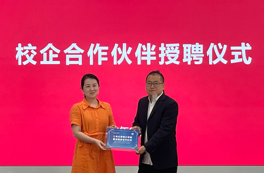 座谈会最后,江琳娜为企业代表、苏州市设计师协会副会长刘庆惠授聘“校企合作伙伴”证书。