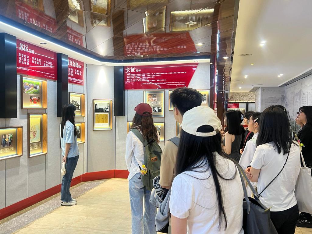 活动中,学员通过沉浸式参观“光辉历程”“革命精神”等展区,重温中国共产党百年奋斗史,感悟红色文化内涵。直观展现了党领导人民取得的伟大成就,激励设计青年将专业实践与民族复兴伟业相结合,以匠心传承红色基因,用奋斗诠释使命担当,在新征程中贡献青春力量。