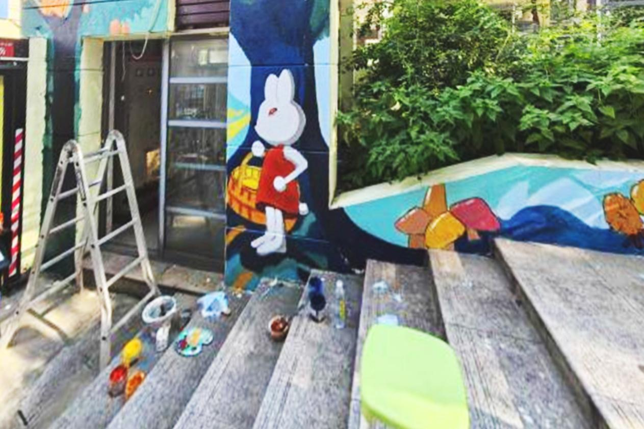 在艺术课堂奠定的良好基础上,墙绘创作正式开启。团队成员与社区小朋友分工协作,美术生负责勾勒复杂轮廓,孩子们参与简单填色。