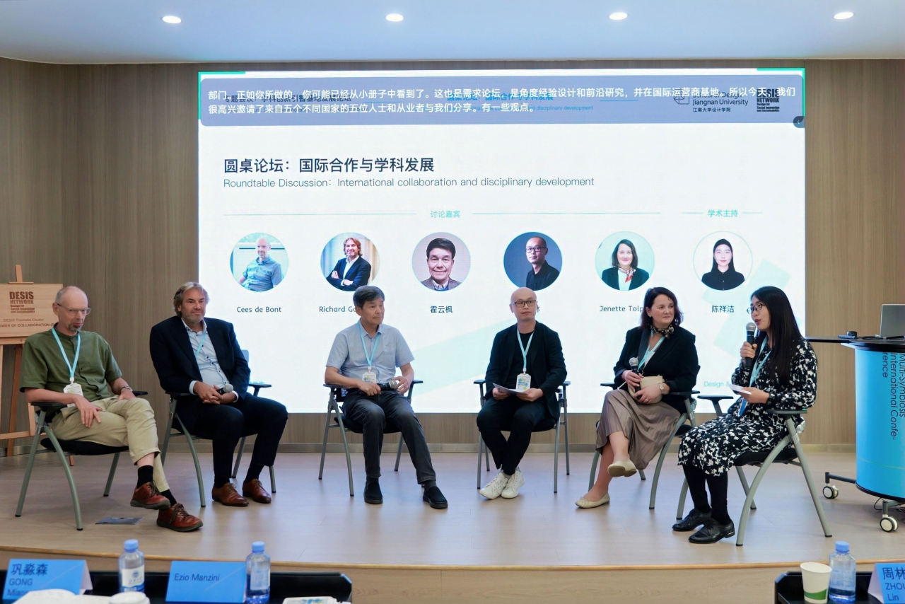 圆桌讨论环节以“国际合作和学科发展”为主题,由引智基地副主任陈祥洁主持。新加坡国立大学Cees de Bont教授指出国际合作对设计教育与研究具有重要支撑作用,跨文化适应能丰富个人能力。代尔夫特理工大学Richard Goossens教授认为协作基于个体理解,应通过项目合作与师生交流平衡各方利益。拉普兰大学Jenette Tolppi主任指出高校应回应学生对国际化的需求,通过相互学习促进学生成长。江南大学霍云枫老师强调设计师应在国际团队中承担文化使者角色,指出“国际化、独立思考、专业精细”是优秀设计教育的核心特质。周林总结提出,中国设计教育应构建价值合作生态,发挥本土实践优势,推动从单向输入到知识共创的转变,形成良性发展的合作生态系统。