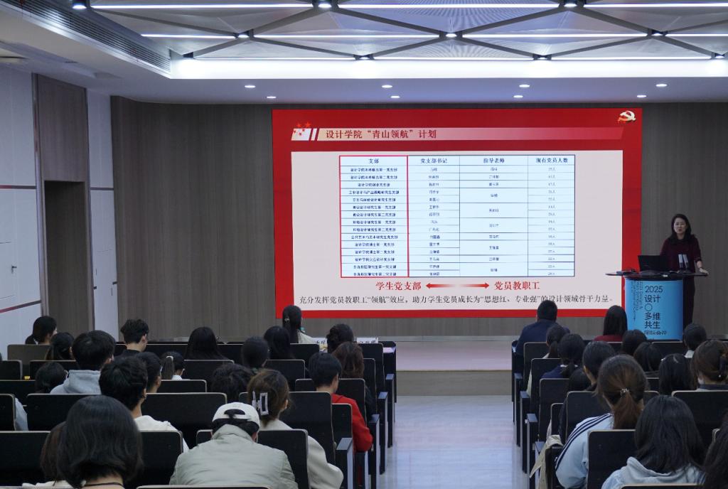 随后,江琳娜正式发布设计学院“青山领航”计划,系统阐释了该计划以强化学生党支部标准化建设为抓手,以推动党建工作与人才培养深度融合为核心,致力于为党组织输送更多“有理想、敢担当、能吃苦、肯奋斗”的新时代青年力量的核心内涵。她指出,要充分发挥党员领导干部、党员教职工在教书育人、管理育人、服务育人中的先锋模范作用,切实加强和改进我校大学生思想政治教育工作,助力青年学生党员成长为“思想红、专业强、情怀深”的设计领域复合型骨干人才,为行业发展与国家建设注入青春动能。