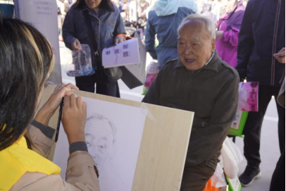 近日,设计学院“益”起设计志愿服务团开展“丹桂飘香绘温情”百幅肖像志愿活动,用20分钟定格60年光阴,以专业所学向学校老一辈建设者致以节日敬意。