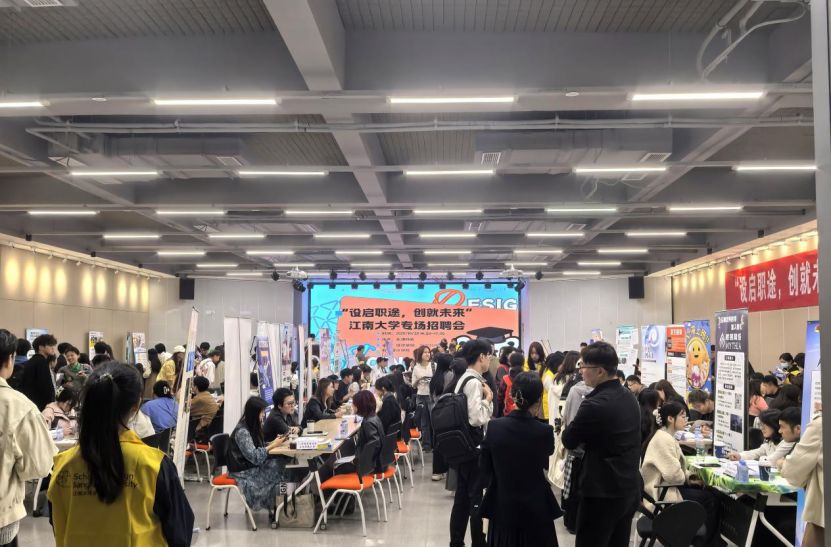 为深入贯彻落实党中央、国务院关于高校毕业生就业工作的决策部署,抢抓秋季招聘关键窗口期,近日,江南大学设计学院联合数字科技与创意设计学院共同举办“设启职途,创就未来”2026届毕业生秋季专场招聘会,在北区大学生活动中心F105招聘大厅顺利举行。来自长三角、珠三角及全国重点区域的54家优质用人单位参会,发布设计类及相关岗位,800余个,现场投递简历600余份,实现人才供需精准对接与高效“双向奔赴”。