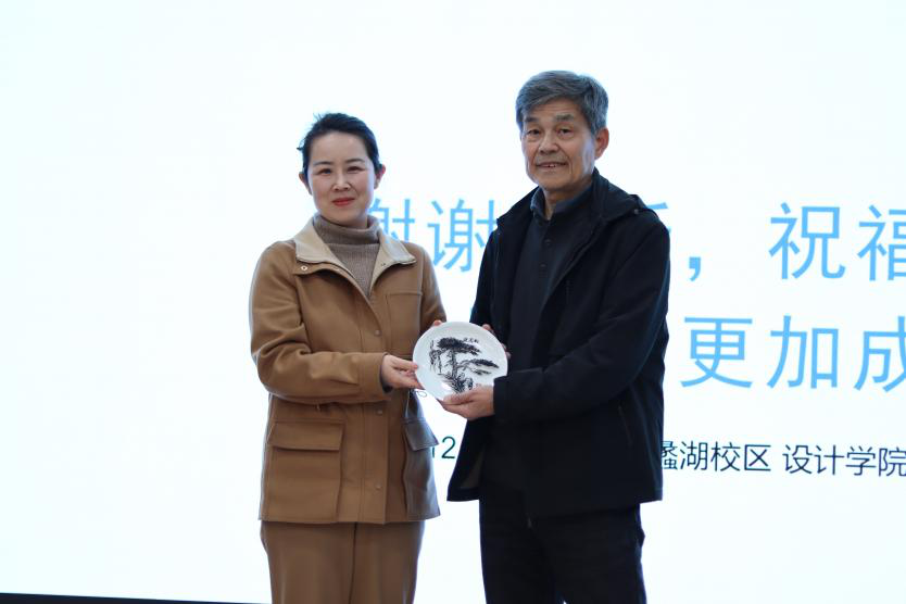 讲座尾声,学院为霍云枫送上纪念礼品致谢。他寄语学子:“坚守设计初心,深耕领域,以设计回应社会需求、解决问题,在创造价值中实现人生理想。”