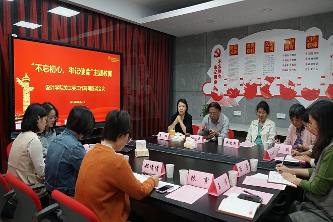 10月23日下午两点,设计学院在党员活动室“初心苑”召开“不忘初心、牢记使命”主题教育——关工委工作调研座谈会议。设计学院党委书记邱建平,党委副书记、副院长王晖,学院关工委常务副主任施培新,关工委组织员林璘,院党委秘书、关工委秘书王小燕,院分团委书记、关工委秘书陆芳以及全体辅导员济济一堂,就关工委下半年工作计划、工作条例和职责等问题深入交流探讨。