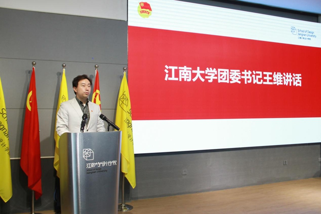 王维讲话,他认为此次设计学院团代会与学代会的召开是学院团学组织和广大青年学生政治生活中的一件大事,充分肯定了设计学院团学组织三年来取得的成绩,并对广大团员青年提出三点希望,一是要培养学术精神,做好学生本职工作;二是要建立自己的意识世界,广泛汲取知识;三是要主动拥抱政治生活,增强社会责任感。他呼吁大家汇聚青春力量,为改变发声,坚定理想信念,培育公平正义感,勇担时代使命。