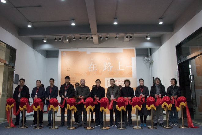 2019年12月8日,“在路上——葛军紫砂艺术及国际壶艺术作品展”开幕式在江南大学美术馆举行。原中国人民解放军某部总工程师张忠华将军、省美术家协会副主席陆庆龙,省委宣传部原部务委员、办公主任张冠军,中国陶瓷行业协会副会长、宜兴市陶瓷行业协会会长史俊棠,荷兰著名陶艺家杨慕华,校党委副书记戴月波,副校长张凌浩,院长魏洁以及学院师生代表等出席开幕式。开幕式由学院党委书记邱建平主持。