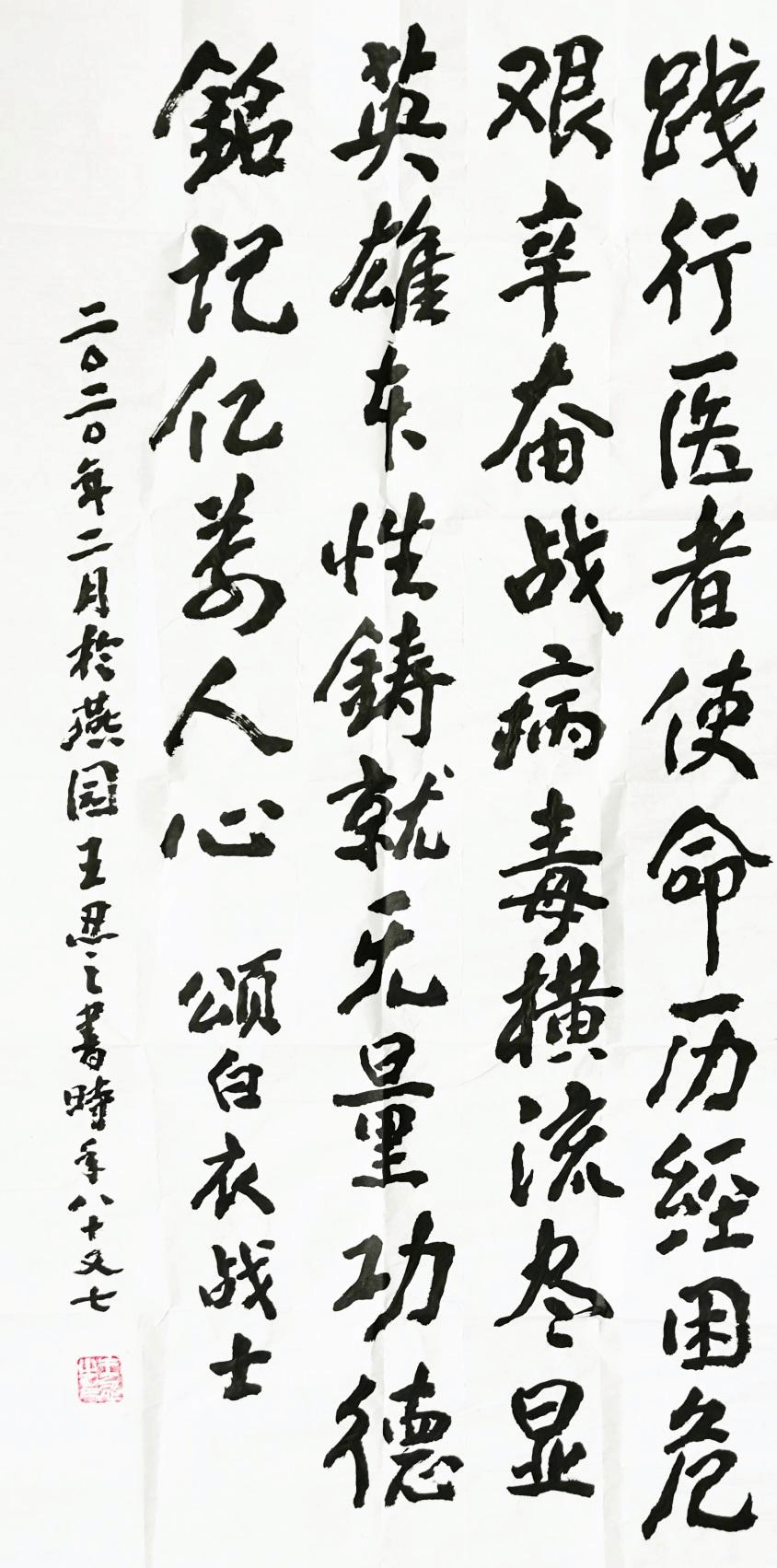 书画作品以抗击疫情为主题,自二月初活动开展以来,得到了研究员们的积极响应,大家纷纷投身艺术创作,以艺抗“疫”。原中宣部长、中国社科院党委书记、江南大学书画研究所前所长王忍之得知消息后第一时间拿出艺术作品进行捐赠。