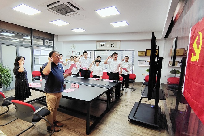 随后,王晖领誓,全体新党员宣誓。句句铿锵有力,字字掷地有声。简短而庄严的仪式、洪亮且郑重的誓言,鲜明地表达了新党员们对党和人民的忠诚。