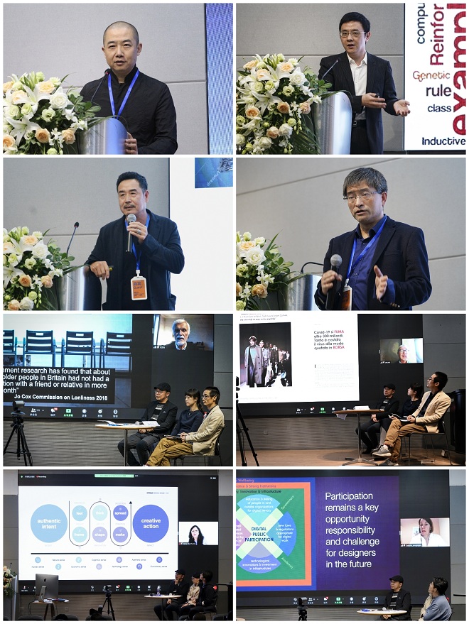 开幕式结束后,中国美术学院副院长韩绪教授、上海交通大学设计学院执行院长胡洁教授、中央美术学院城市设计与创新研究院院长王中教授、浙江大学现代工业设计研究所所长孙守迁教授,以及受疫情影响,在线上同步参会的国际社会创新与可持续设计联盟创始人Ezio Manzini、米兰理工大学荣誉教授Arturo Dell'Acqua Bellavitis,Spread Design and Innovation 联合创始人Sonia Manchanda,瑞士卢塞恩应用科技大学设计与管理能力研究中心主任Sabine Junginger等8位国内外知名专家学者围绕“民生智慧·设计未来”这一主题,结合各自研究领域分别发表了精彩的演讲国内外知名院校专家分别在线上和线下带来了精彩的主旨报告。韩绪教授以“设计未来,权在足下”为题,从“现在和未来”“ 内涵和跨界”“ 民生和智慧”“ 整合和分课” “幸福和生活”等几组关键词,分享和讨论了当今世界中设计学科在体系和秩序深度调整之际,明显增多的不确定因素,使设计学科面临着新的机遇和新的挑战,尝试思考设计之恒与变,指出当前的设计学科发展关键在于设计高校的站位与责任;并提出“重视发明日常”以及“重建设计人文”的深入思考。