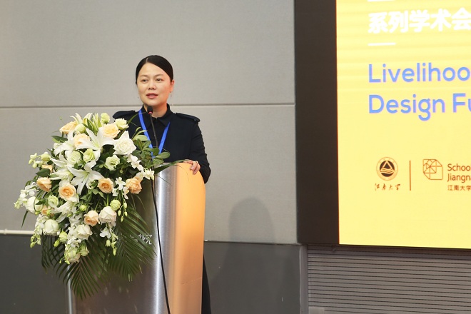 随后,魏洁以“民生智慧·设计未来”为主题进行了主旨演讲,介绍了江南大学设计学院自2012年以来以“设计教育再设计”“为转型而设计”系列会议讨论的基础上,在设计学院办学一甲子的新篇章开始之际,发起以“民生智慧·设计未来”为主题的新一轮学术会议的源起并进行了主题阐释和版块介绍;介绍了设计学院相关情况,通过六十年的六个“十” 从教学成果、教材、研究论文、科创项目、专著、奖项等方面梳理了学院的发展历程,最后表达了学院借助此次会议主题及六十周年系列活动的契机,致敬未来的初衷。