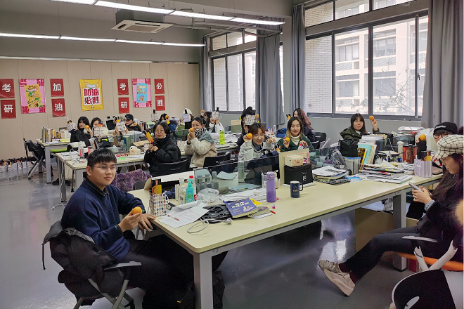 学院全方位、多措施为考研学生提供良好环境和便利条件,专门开设24小时考研自习教室,保障空调供应,邀请考研成绩较好的同学进行经验分享。举行考研慰问活动、考研心理辅导等一系列活动,使得同学们感受到了学院的人文关怀,同时更加坚定考研信心。随后,学院领导为同学们分发精心准备的考研加油包,愿同学们考出理想成绩,最终结果“橙”心如意!慰问活动暖人暖心,不仅在寒冷冬天为考研学生送来温暖,而且带来信心和力量。产品设计专业廖望同学表示,江南大学设计学院本科阶段的学习让她坚定决心继续报考母校,希望能继续在设计学院完成研究生的学业。工业设计专业的朱文博同学说到,感谢学院领导和老师们的支持与关怀,也感谢研友们的一路陪伴,在考研的最后阶段,她将会越战越勇,坚持到底。环境艺术设计专业的李美依同学说,考研路不比高考这种集体考试,考研是一种个人选择,虽然过程艰难,但是这一路走来收获满满。考研进入最后冲刺阶段,相信设计学院考研学子定会斗志昂扬,坚持到底,发挥出最佳水平!