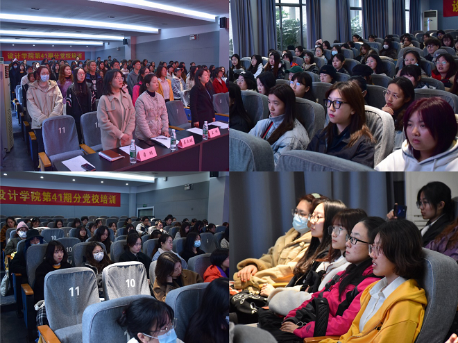 3月17日,设计学院第41期分党校开班仪式在设计学院一楼报告厅召开。学院党委书记邱建平、副书记王晖、分团委书记吴雨琛及相关辅导员、111名学生党员发展对象参加活动,17级辅导员郑倩倩主持此次开班仪式。
