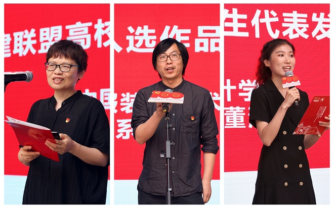 联盟高校代表中国美术学院设计艺术学院党委书记陈燕屏、教师代表东华大学吴春茂、学生代表江南大学设计学院董浩宇同学致辞和发言