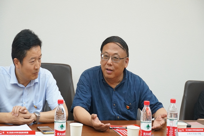 戴月波在讲话中表示,长三角设计学科党建高校联盟是设计人围绕中心任务抓党建,本着共同的愿景开展党建工作的创新探索,如何在传承中华民族优秀传统文化基础上开展设计,在中华民族的伟大复兴道路上贡献设计人的智慧,是设计学科的重要使命。他指出,党史学习教育有两个维度,一是不忘过去、不忘初心,二是要思考共产党人在未来如何实现民族复兴和人民幸福的价值追求,在这个过程中,结合党建联盟平台共同开展以党建引领的学科建设尤为重要,艺术要服务人民,服务党的事业,在高校育人环节中,发挥重要作用。