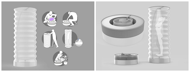 《E-shower》设计作品说明:联合国粮农组织发布的《2020年粮食及农业状况》报告称,当前全球32亿人口面临水资源短缺问题。据统计,过去20年间,全球人均淡水供给量减少20%以上,水资源匮乏,生活用水拮据,使得贫困地区的环境十分糟糕,再加上气候影响,十分容易滋生细菌。许多贫困地区的人们只能露天在河边打盆水往身上一浇,没有任何遮蔽,使用的水源也十分不卫生,容易滋生细菌,产生疾病。E-SHOWER是一款简便的的淋浴装置,可以帮助贫困地区的人们方便快捷地搭建一个洗浴空间,并能够对洗澡水进行简单的过滤。使用前将水注入装置底部的水箱,然后将折叠罩拉起固定,形成一个封闭的淋浴空间,保证淋浴过程的私密性。使用时通过反复踩压水泵将过滤后的洁净水源通过压力输送到淋浴喷头。淋浴时,装置底部会再次将淋浴水收集起来进行过滤并再次循环;淋浴完成后,水箱内储存的水经再次过滤可以用来灌溉、浇花等,最大化实现水资源的再利用。