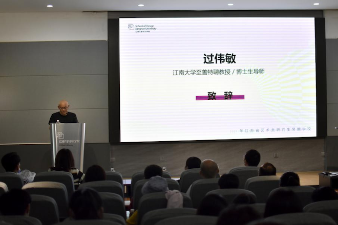 过伟敏代表暑期学校的授课教师发言,对活动的举办表示祝贺,从暑期学校的主题出发,他表示,创新是设计的唯一驱动力,尤其是面对传统文化,更要从多元的角度与时俱进地传承发扬好,并期待参加本次活动的同学们能产出好的设计成果和能留存记忆的收获。南京林业大学艺术设计学院研究生叶迅荣同学作为暑期学校学员代表发言,对江苏省艺术学类研究生教学指导委员会和江南大学设计学院举办此次暑期学校交流的机会表示感谢;他表示,紫砂是江苏的一张名片,紫砂文化的创新设计探索,对当下的设计有着重大的启迪作用。全体学员将珍惜这十天宝贵的学习时间,发挥各自专业特长,产出丰硕成果。
