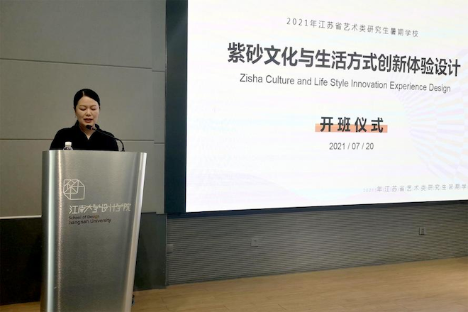 魏洁代表江南大学设计学院对参加暑期学校的专家和全体学员表示热烈欢迎,她表示,紫砂文化饱含着优秀中国传统文化,更为现代生活方式的创新提供了灵感源泉,本次暑期学校,结合区域经济社会发展需求,统筹整合无锡特色紫砂文化资源,充分发挥江南大学设计学科专业优势,结合学院未来发展规划和研究生培养目标,对紫砂文化与生活方式创新体验设计开展深入探索,具有十分重要的意义和社会价值。
