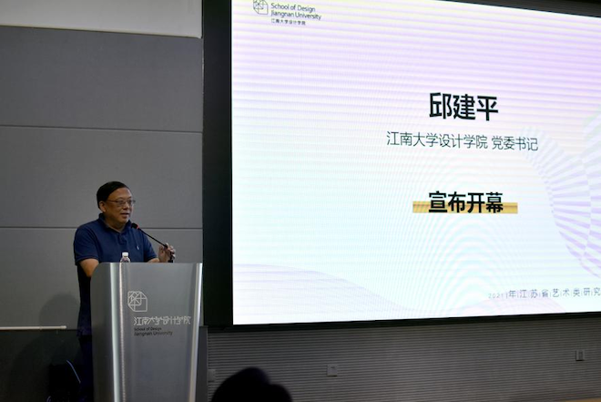 7月19日上午,“紫砂文化与生活方式创新体验设计”2021年江苏省艺术学类研究生暑期学校在江南大学设计学院开幕。江南大学副校长堵国成教授,设计学院党委书记邱建平,院长魏洁教授,学术委员会主席过伟敏教授,视觉传达系陈原川教授,公共艺术与美术系系主任赵昆伦副教授,工业设计系沈杰副教授,暑期学校工作坊指导教师团队,和经选拔的来自江南大学、东南大学、南京艺术学院、南京林业大学、南京工业大学、苏州大学、江苏大学、常州大学等省内高校的近40名优秀研究生共同参与本次开幕式。开幕式由设计学院副院长廖曦主持。
