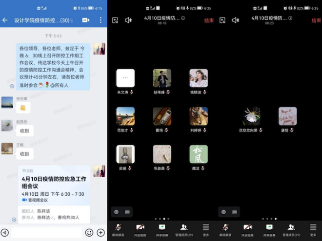 疫情就是命令,防控就是责任。为切实做好学校疫情防控工作,确保全院师生的健康安全,近期,设计学院召开疫情防控系列专题会议,班主任队伍、学工辅导员条线和学院应急防工作组分别就学院疫情防控工作做专题动员部署。设计学院全体党委委员、教工党支部书记、系部主任、全体科级干部、班主任队伍、全体辅导员等均通过线上参与系列会议。