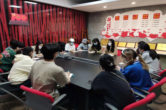 设计学院分团委书记吴雨琛主持团学骨干座谈会,与同学们共同探讨了校园疫情防控工作,全体特称团支部支部书记、学院团学骨干、各年级团支书代表参与座谈。会上,团支书代表反馈了在疫情防控及团工作中遇到的困难,主要包括日常物资补给、集体活动开展、线上教学不便等方面。吴雨琛针对同学们提出的问题进行了详细解答,并针对同学们关注的热点问题给出具体可行的解决方案。同时布置“喜迎二十大、永远跟党走、奋进新征程”主题教育、庆祝建团100周年等相关工作,鼓励团干部勇当先锋,做出表率,为战胜疫情贡献出自己的力量。美术2102团支书唐佳仪同学表示将遵循老师的建议,解决团工作中遇到的问题,并且继续认真引领同学们做好疫情时期的团工作建设。