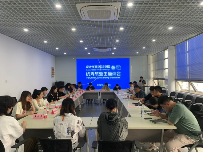6月13日下午,设计学院2022届优秀毕业生座谈会在C510会议室召开。设计学院党委书记邱建平,院长魏洁,党委副书记王晖,副院长曹鸣、廖曦,毕业年级辅导员和优秀毕业生代表参与了此次会议。会议由毕业年级辅导员马倩如主持。