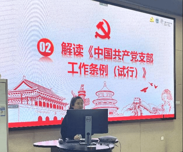 吴雨琛带领与会人员共同学习《中国共产党党员教育管理工作条例》。她指出《条例》是新时代党员教育管理工作的基本遵循,对于提高党员队伍建设质量和激发党组织的生机活力都具有十分重要的意义,并深入浅出的介绍了《条例》的内容,重点解读了党员教育基本任务、党员日常教育管理主要方式和党员监督和组织处置等三个部分,叮嘱各位支部委员能够带领支部党员充分掌握《条例》的各项内容,夯实理论功底,筑牢思想根基,支部全体党员真正做到不仅在组织上入党,更争取在思想上入党,在行动上入党。