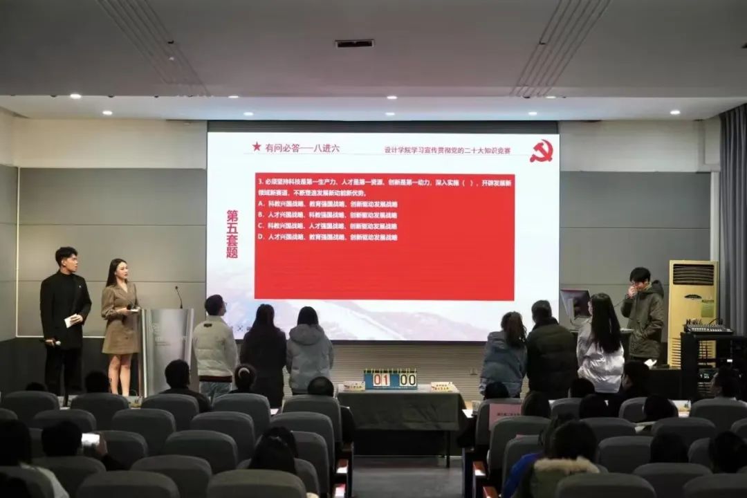 据悉,本次活动是设计学院学习宣传贯彻党的二十大精神系列活动之一。活动以知识竞赛为载体,带动辐射广大学生原汁原味学原文,扎扎实实悟原理,准确完整、系统全面把握二十大报告的科学内涵、核心要义与本质要求,在学院掀起学习宣传贯彻党的二十大精神的热潮。