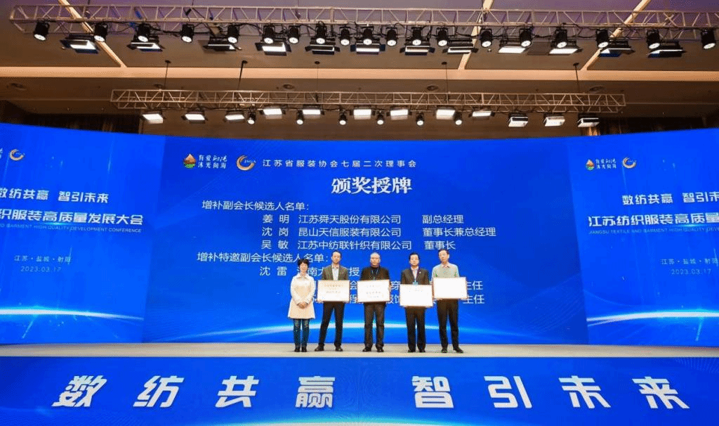 3月17日,2023江苏纺织服装高质量发展大会暨江苏省服装协会七届理事会在江苏射阳召开。
