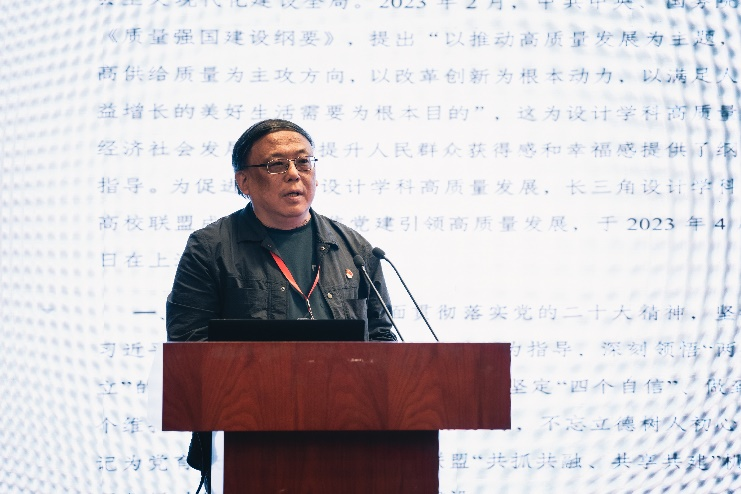 作为联盟发起人、首任联盟轮值主席、设计学院原党委书记邱建平代表联盟9所成员单位共同发布“长三角设计学科党建高校联盟发展倡议”。倡议从思想引领、战略谋划、设计赋能、传承创新、育人质量五个方面展开,强调依托新时代高校基层党组织建设,深化“共抓共融、共享共建”机制,推动学科建设可持续、高质量发展,聚力服务智能制造、乡村振兴、城市更新、数字智慧等,推动优秀中华传统文化传承创新,探索引领行业高质量发展、有社会责任感的新型设计师与设计领导者的人才培养新模式。