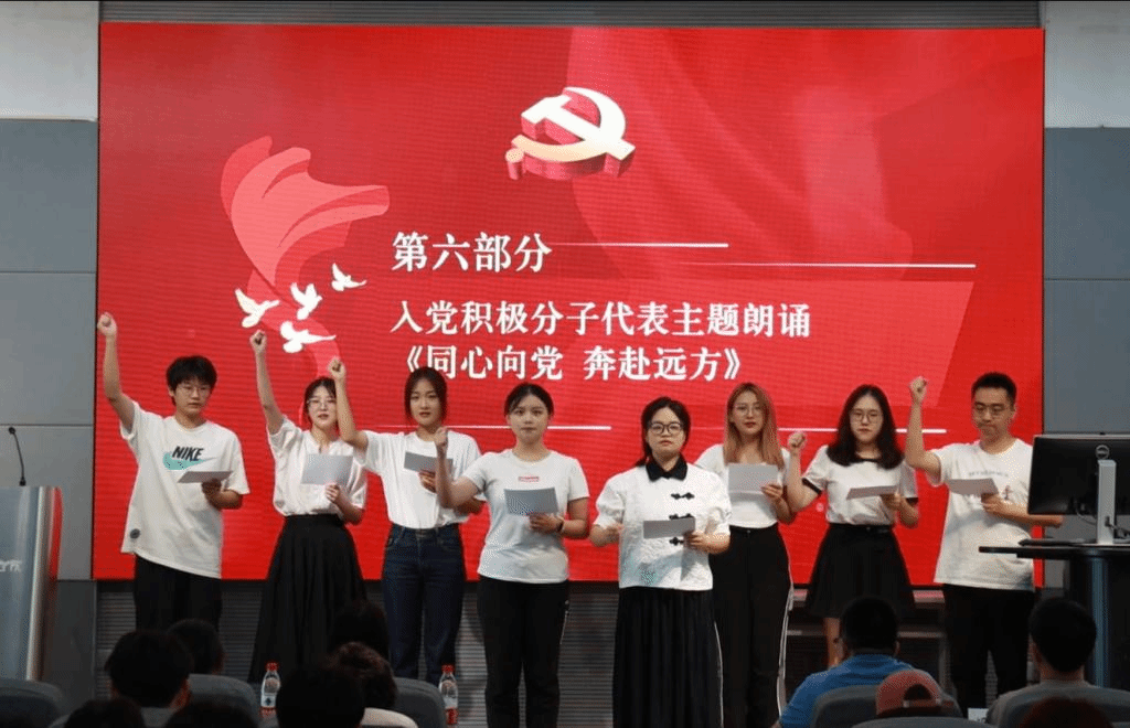 美术2201班的高原同学作为入党积极分子代表发言,她首先代表培训班全体学员感谢学校、学院提供的宝贵学习机会,感谢老师们的精心筹划安排,随后,她结合习近平总书记在党的二十大报告中对广大青年的寄语,呼吁大家把“个人梦”融入到“中国梦”,做一名思想政治素养高、文化知识学得好的优秀大学生,用实际行动践行“请党放心,强国有我”的青春誓言。随后,学员代表为与会人员带来《同心向党奔赴远方》的主题朗诵。