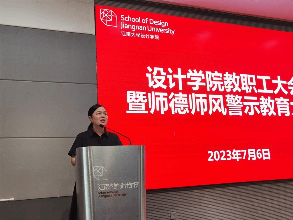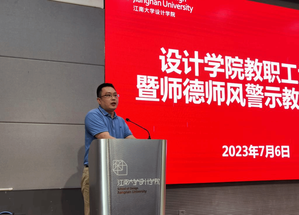 设计学院院长魏洁通报了教育部公开曝光的违反教师职业行为十项准则的典型案例、校内警示教育案例以及国家自然科学基金委员会监督委员会通报案例,进行师德师风警示教育。希望全体教职工以通报的案例为戒,警钟长鸣,严格遵守师德师风各项规定和要求,做到内化于心,外化于行,潜心教书育人,做新时代“四有”好老师。
