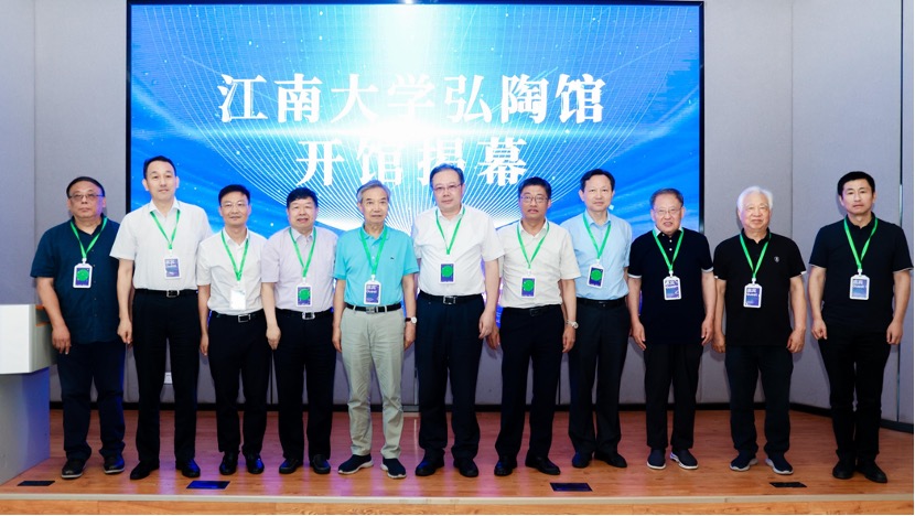 7月16日,江南大学弘陶馆开馆揭幕仪式在东氿校区举行。校党委书记朱庆葆,中国工程院院士、校长陈卫,中国工程院院士、未来食品中心首席科学家陈坚,无锡市文联党组书记、主席杨建,宜兴市副市长张达志,校党委副书记戴月波,中国陶瓷工业协会副理事长、宜兴市陶瓷行业协会会长史俊棠及其家人出席活动。活动由设计学院原党委书记邱建平主持。