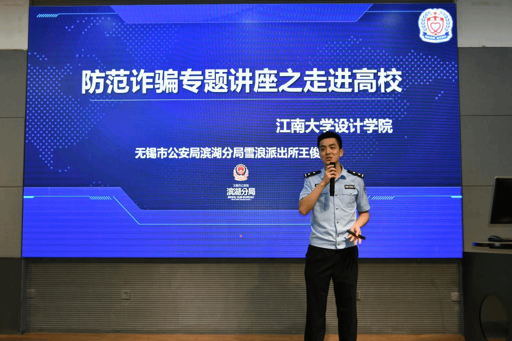 为进一步筑牢高校反诈“防火墙”,切实提升在校师生防骗意识和能力,结合新生入学主题教育活动,9月3日下午,设计学院邀请了无锡市滨湖区雪浪街道派出所王俊皓警官,为全体新生作防范诈骗专题讲座,为送上“开学反诈大礼包”,打好开学“预防针”。