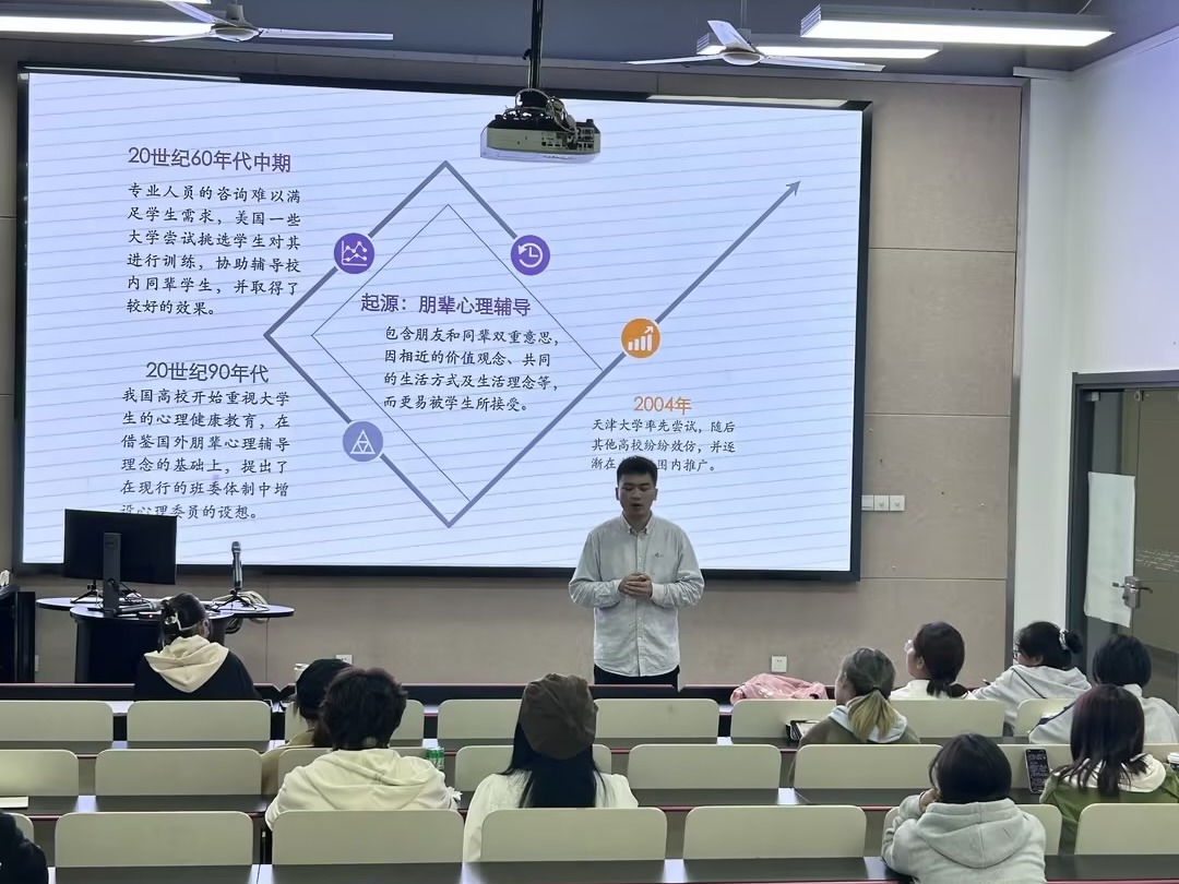 为加强设计学院心理委员对岗位的理解,发挥朋辈互助的优势作用,形成团结互助、积极向上的心理帮扶团队,同时为普及心理健康教育知识,提高心理健康素养,培育自尊自信、理性平和的健康心态,10月23日,设计学院在A104教室对学院2023级全体新生心理委员开展培训会。