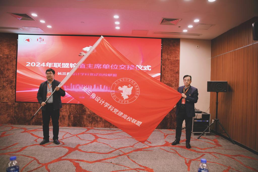 年会还进行了2024年联盟轮值主席单位交接仪式。合肥工业大学艺术学院党委书记孙建海从苏州大学艺术学院党委书记宁正法手中接过联盟旗帜。