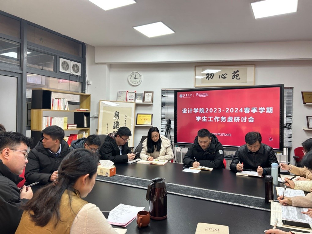 为进一步落实学院心理工作闭环管理,提升心理健康教育实效,设计学院召开新学期学生工作务虚会暨心理工作专题推进会。学院党委副书记、副院长江琳娜主持会议,学院分团委书记吴雨琛及全体辅导员参会。