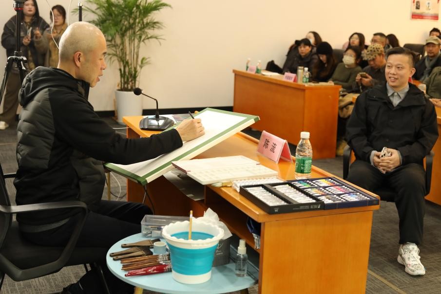 2024年3月9日,由江南大学设计学院、无锡市文学艺术界联合会主办,无锡市美术家协会承办,江苏凤凰画材科技股份有限公司支持的“陈流水彩艺术示范分享会”开幕。