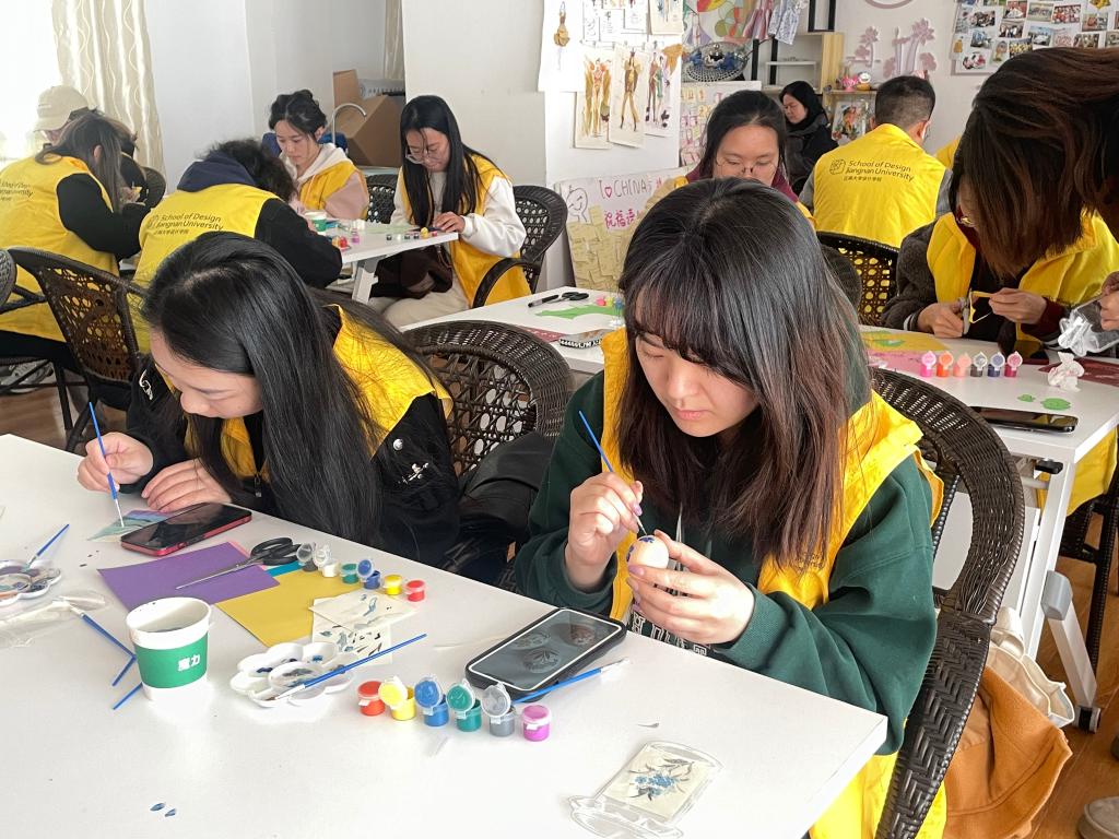 春光明媚,柔风拂面,满园春色醉人心。学院和园区精心筹备,认真布置,提前准备齐全活动材料。来自设计学院的同学们齐聚榴园公寓活动室,屏气凝神,全神贯注,尽心绘制好每一笔色彩,将他们对春天的展望和巧思,倾注在作品上,一件件成品的出现,展现从无到有的妙不可言。