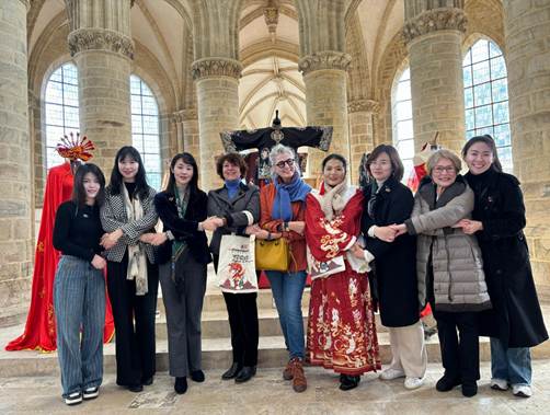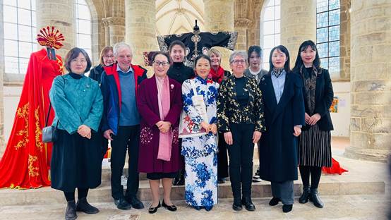 2024年是中法建交60周年,为促进中法两国文化交流与互鉴,3月19至3月23日,受法国诺曼底库塘斯市原市长Yves Lamy伊夫·拉米先生及诺曼底法中友好协会会长萧遐Xia LEPERCHOIS女士的邀请,教育部中华优秀传统文化传承基地首席专家、设计学院博士生导师梁惠娥教授、服装系副主任邢乐副教授、贾蕾蕾老师等参加“2024年第三届法国诺曼底大区‘中国风登陆诺曼底’中法文化节”。在此次文化节中,梁惠娥教授团队承办“‘相逢一甲子,以衣话桑麻’中国传统服饰文化与创新设计作品展览”、服饰文化要闻、刺绣文化体验等活动。