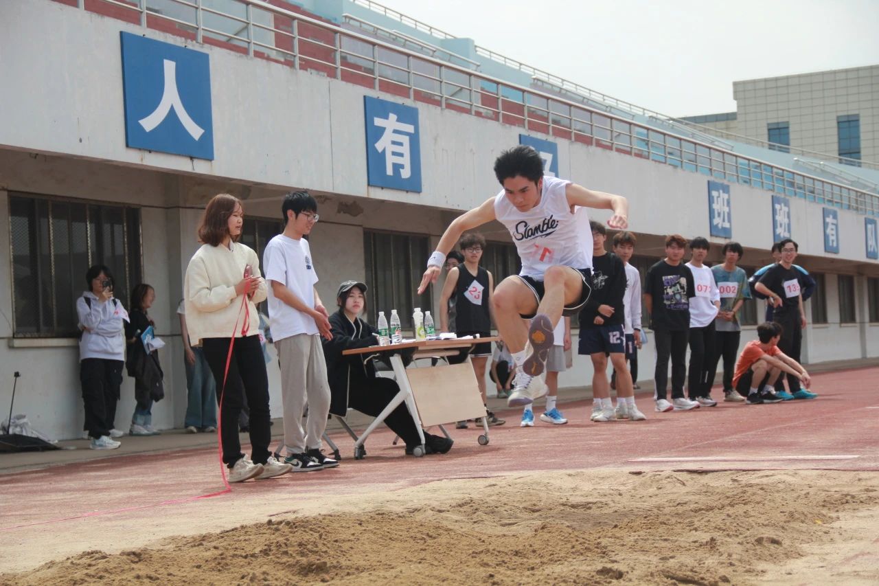 随着开幕式的圆满结束,紧张激烈的比赛随即展开。本次运动会设有田赛、径赛、学生团体项目、三大类。涵盖了短跑、长跑、接力、跳远、跳高、铅球、拔河等形式丰富的比赛内容。在径赛中,选手们如同脱弦之箭般飞驰在跑道上,每一步都显得那么坚定有力。观众席上,同学们的加油声此起彼伏,为运动员们注入了无穷的动力。接力赛中,团队的默契配合和传递速度成为了胜负的关键,每一次接力都让人心跳加速,感受到了团队合作的力量。田赛赛场上,着陆时带起的沙花,是他们短暂飞翔的见证,每一位运动员都在用自己的方式诠释着“更高、更快、更强”的体育精神。